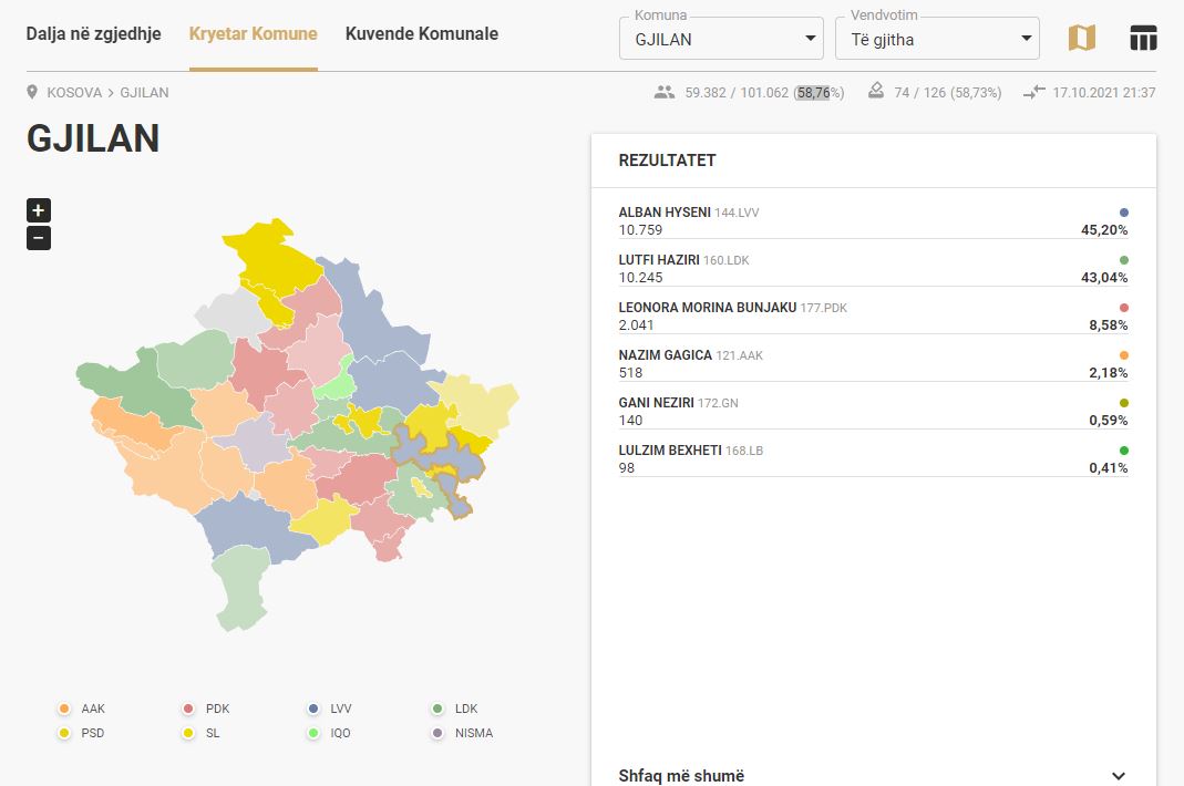 Janë numëruar mbi 58% të votave në komunën e Gjilanit.