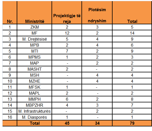 Tabela 1: Ministritë që kanë planifikuar të hartojnë projektligje dhe numri i tyre