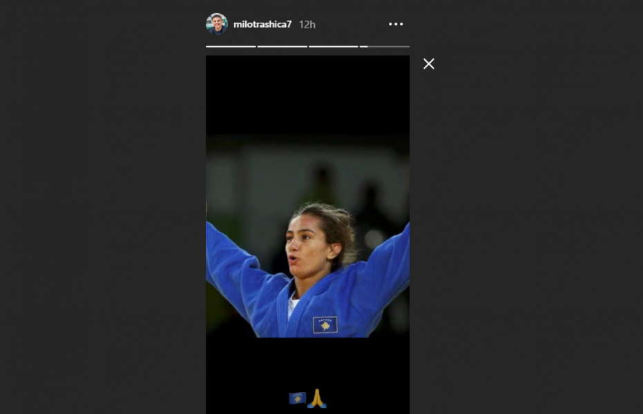 Rashica, i cili po shkëlqen me ekipin kombëtar të futbollit, i është gëzuar medaljes së artë të Majlindës. Ai e ka postuar një fotografi të heroinës Kosovare në llogarinë e vet zyrtare në Instagram dhe pranë saj edhe një emotikon falënderues bashkë me flamurin e Kosovës.