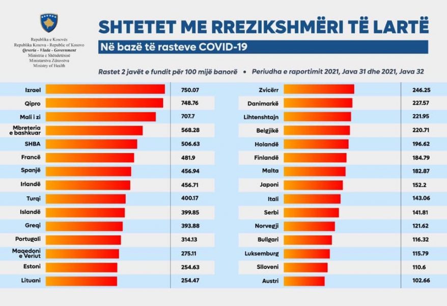 Ministria e Shëndetësisë ka publikuar listën e shteteve me rrezikshmëri të lartë.