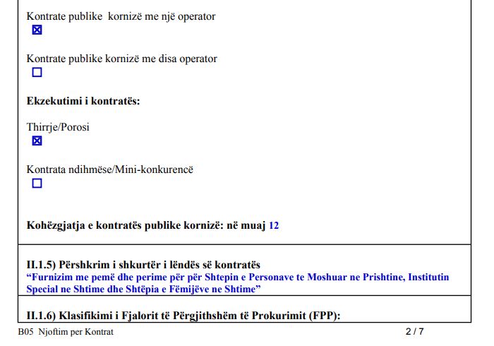 Në njoftimin e publikuar në KRPP, thuhet se këto institucione do të furnizohen edhe me banane, limon, molla, portokaj, dardha, dredhëza, kumbulla, mandarina, pjepër, shalqin, kivi dhe rrushë.