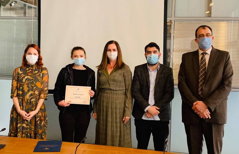 Mirënjohje për fitoren e medaljes së argjendtë në Olimpiadën Matematike Evropiane për vajza 2021 (European Girls Mathematical Olympiad-EGMO 2021), i ka ndarë ministrja e Arsimit, Shkencës Teknologjisë dhe Inovacionit (MAShTI), Arbërie Nagavci nxënëses, Era Syla.