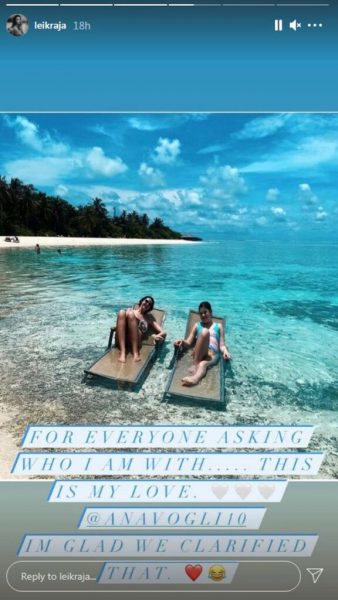 “Për të gjithë që pyesin me kë jam… Kjo është dashuria ime Ana, jam e lumtur se e sqaruam këtë”, ka shkruar në mbishkrim moderatorja.