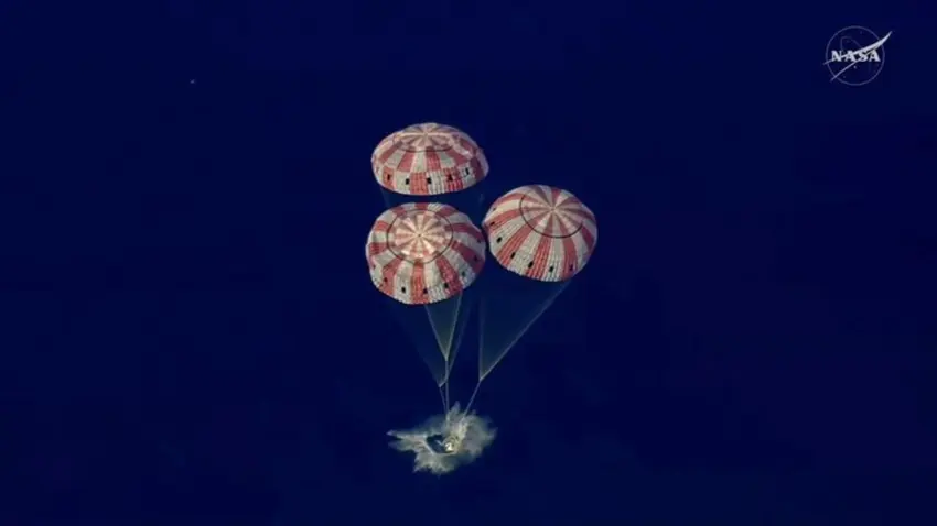 Kapsula me katër astronautë, tre amerikanë dhe një kanadez, përfundoi një nga fazat më kritike të misionit me një ulje dramatike me parashutë.