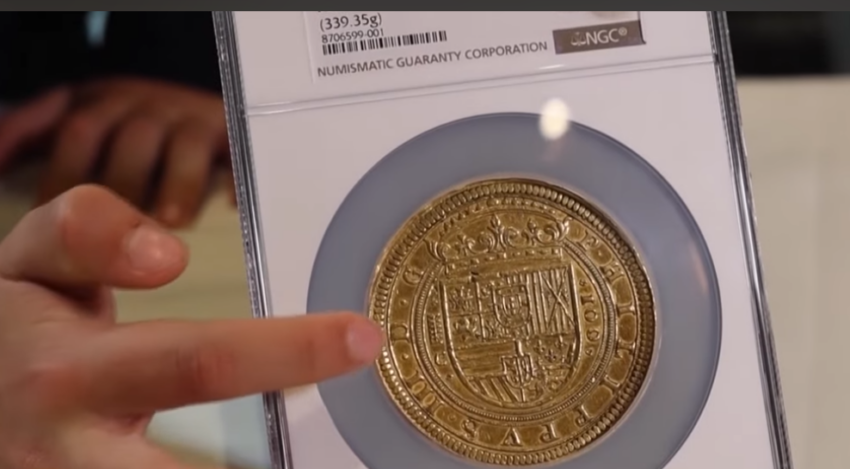 U shit të hënën në një ankand në Gjenevë për 3.4 milionë dollarë. Monedha ka një peshë prej 339 gramësh dhe është emetuar në Spanjë në kohën e mbretit Filip i Tretë.