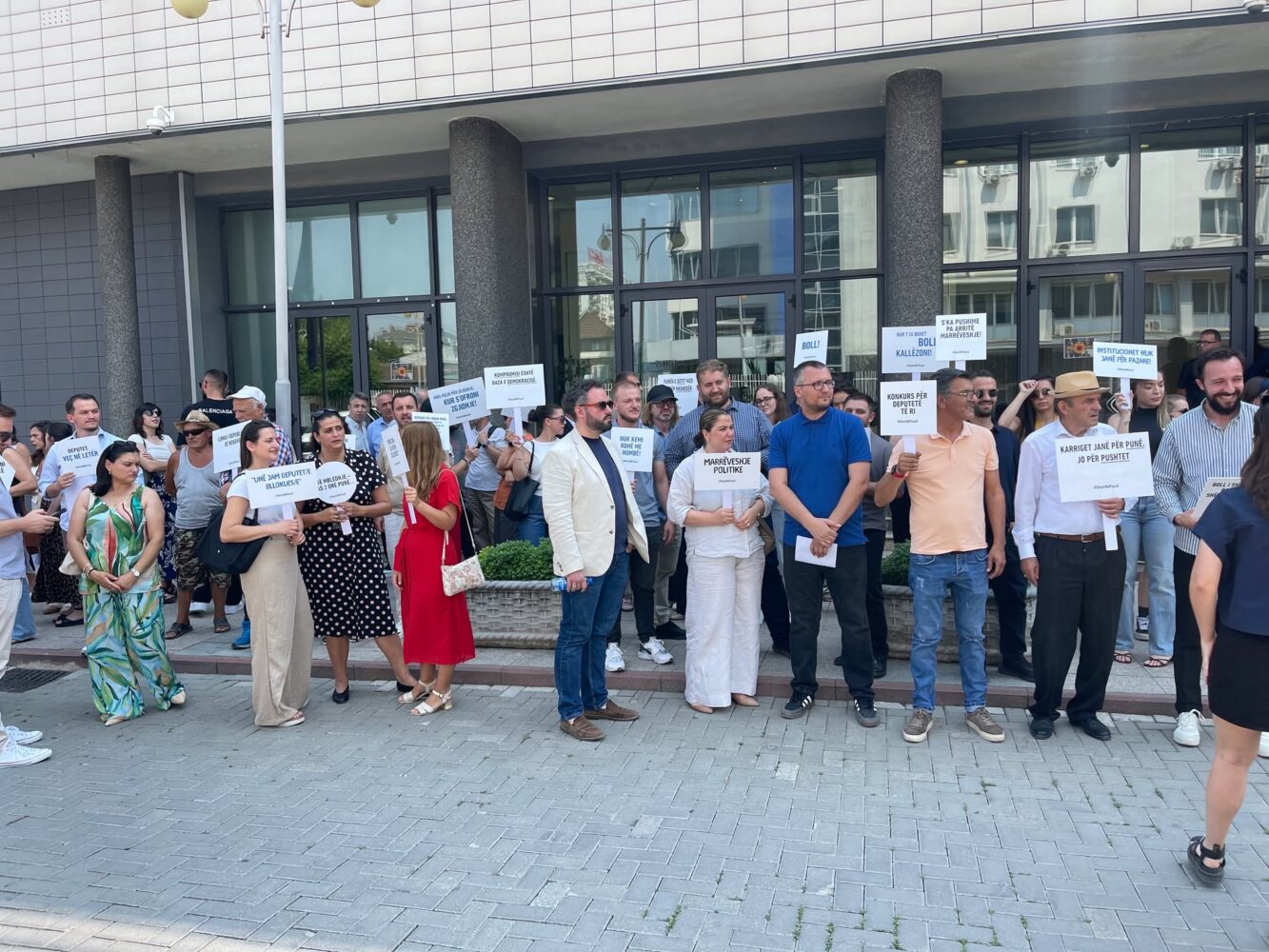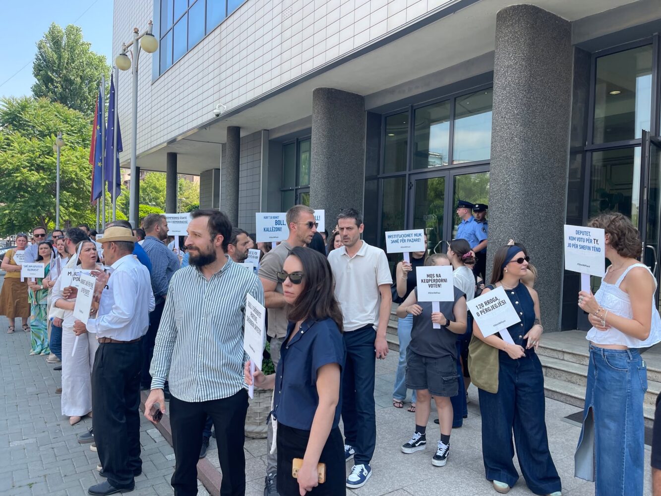 “Boll!”, “Mos folni për zgjedhje, kur s’ofroni zgjidhje, “Konkurs për deputetë të rinj”, “Institucionet nuk janë për pazare”, ishin vetëm disa nga parullat që u panë në këtë protestë simbolike.