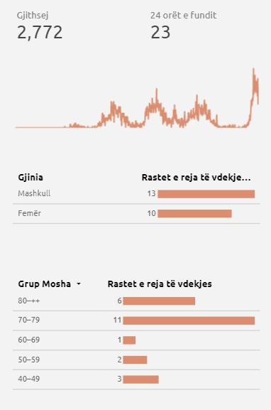 23 persona të infektuar me koronavirus kanë vdekur në 24 orët e fundit. 13 prej viktimave janë burra dhe 10 gra. Ministria e Shëndetësisë ka treguar edhe se të çfarë grumposhash janë viktimat.