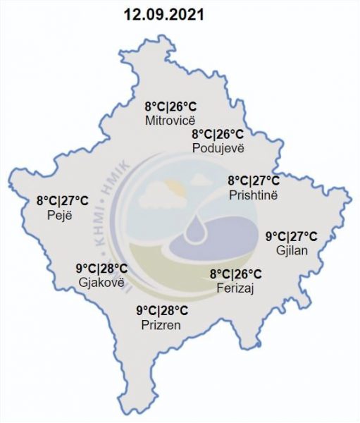 Do të mbajë mot i vranët dhe me intervale me diell. Temperaturat minimale do të lëvizin ndërmjet 8-9 gradë Celsius, ndërsa maksimalet e ditës parashihen të lëvizin ndërmjet 26-28 gradë Celsius.