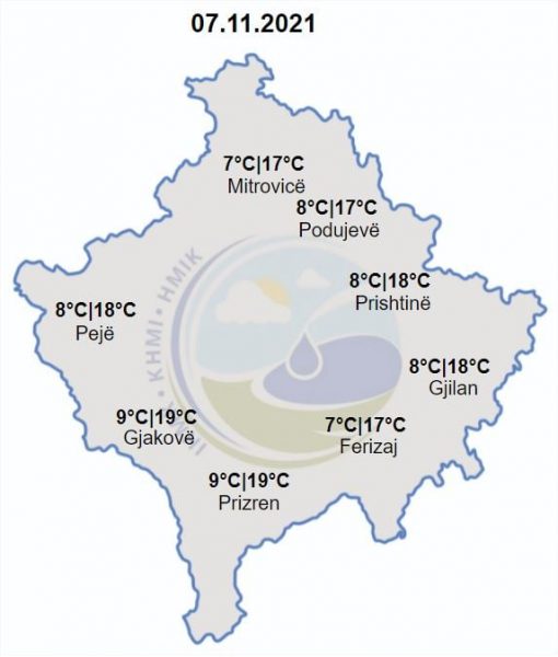 Temperaturat minimale do të lëvizin ndërmjet 7-9 gradë Celsius, ndërsa maksimalet e ditës parashihen të lëvizin ndërmjet 17-19 gradë Celsius.