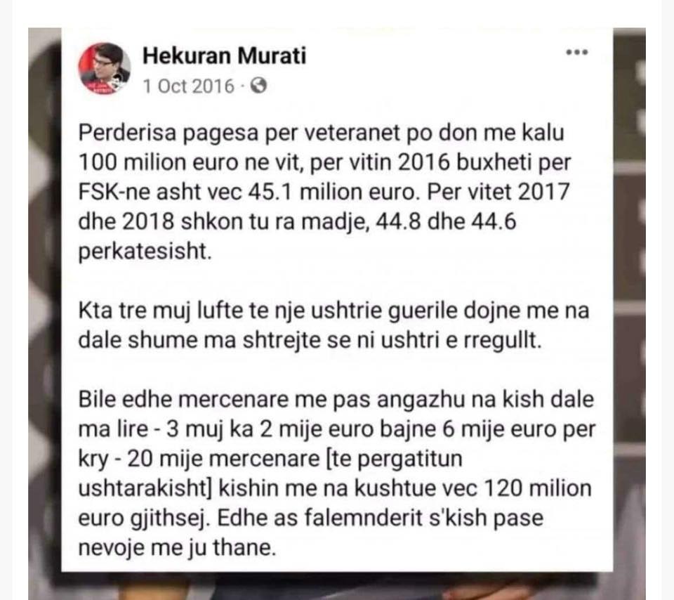“Kur dikush quan luftën e lavdishme të UÇK-së : ‘vetëm tre muaj të një ushtrie guerile’, dhe e krahason atë me kosto buxhetore, nuk është çështje buxheti , është mungesë respekti”, ka shtuar tutje Musliu.