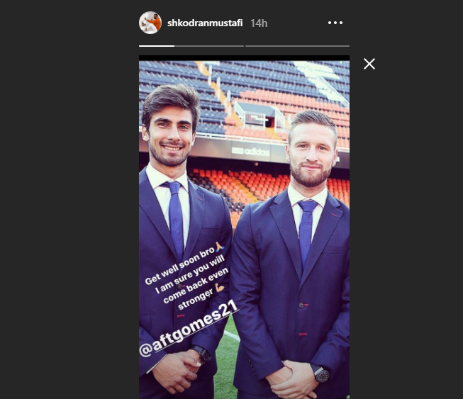 Mbrojtësi shqiptar i Arsenalit, Mustafi i është bashkuar yjeve të shumta të futbollit për t’i uruar shërbim të shpejtë Gomesit, me të cilin dikur ka luajtur në një skuadër.