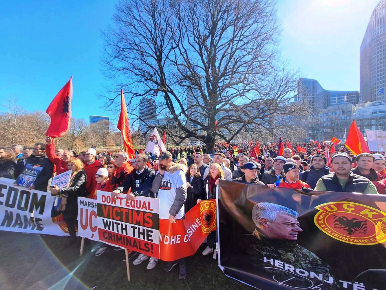 Disa mijëra shqiptarë nga Kosova e diaspora janë mbledhur para Gjykatës Speciale, aty ku po mbahet gjykimi ndaj ish-krerëve të UÇK-së: Hashim Thaçi, Kadri Veseli, Jakup Krasniqi e Rexhep Selimi.