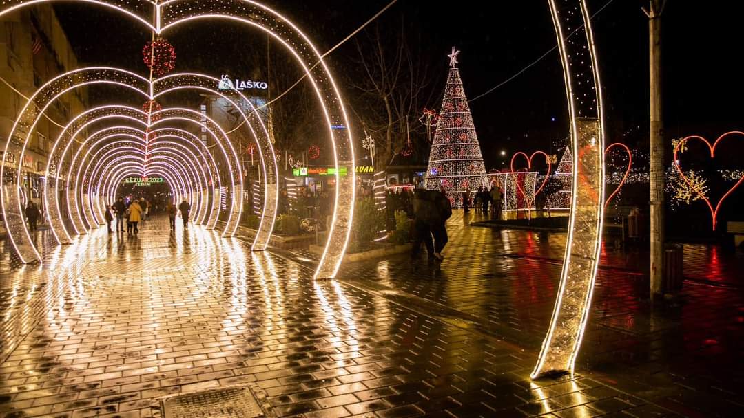 Kryetari i Ferizajt, Agim Aliu, në një festë të organizuar me fëmijët dhe qytetarë të shumtë, ndezi dritat e pemës në sheshin “Adem Jashari” në Ferizaj.