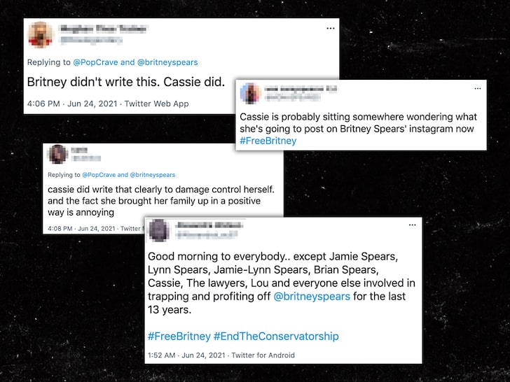 Burime me njohuri të drejtpërdrejtë me rastin tregojnë se në internet pretendohet që menaxheri i rrjeteve sociale të Britney, Cassie Petrey, është ai që krijoi postimin e saj të së enjtes për përrallat dhe jetën e Britneyt.
