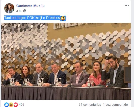 Deputetja e Parlamentit të Kosovës nga Skenderaj, Ganimete Musliu, ka shkruar një reagim. Nuk e ka sqaruar deri në fund nëse ka bërë hajgare, është vetëm e ka theksuar faktin se në ballë të PDK’së s’ka asnjë nga Drenica.