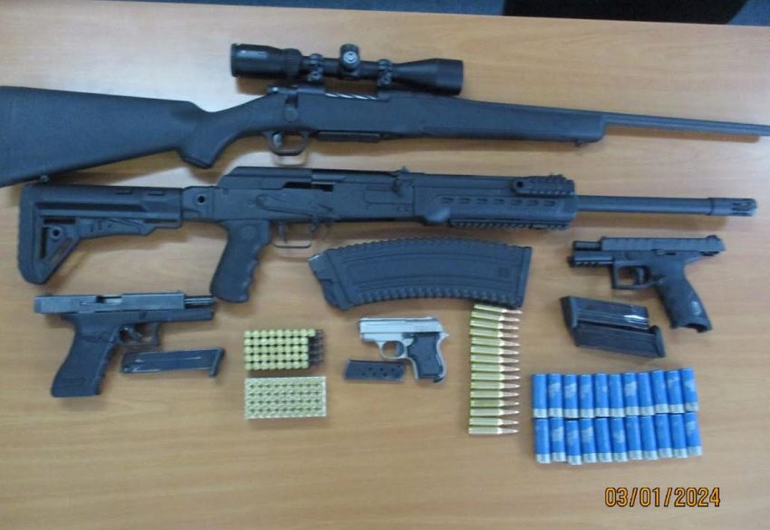 Të arrestuarit janë nga fshati Carrallukë e Malishevës ku pas kontrollit të vendbanimit të dy prej tyre janë gjetur dhe konfiskuar: dy armë zjarri të gjata, tri armë zjarri të shkurtra (pistoleta) dhe 128 fishekë.