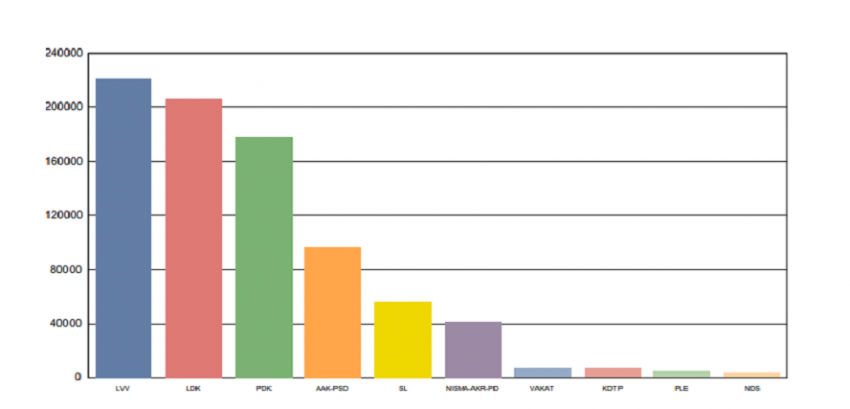 Eugen Cakolli nga Instituti Demokratik i Kosovës ka bërë renditjen e partive në bazë të komunave ku dolën ato të parat.