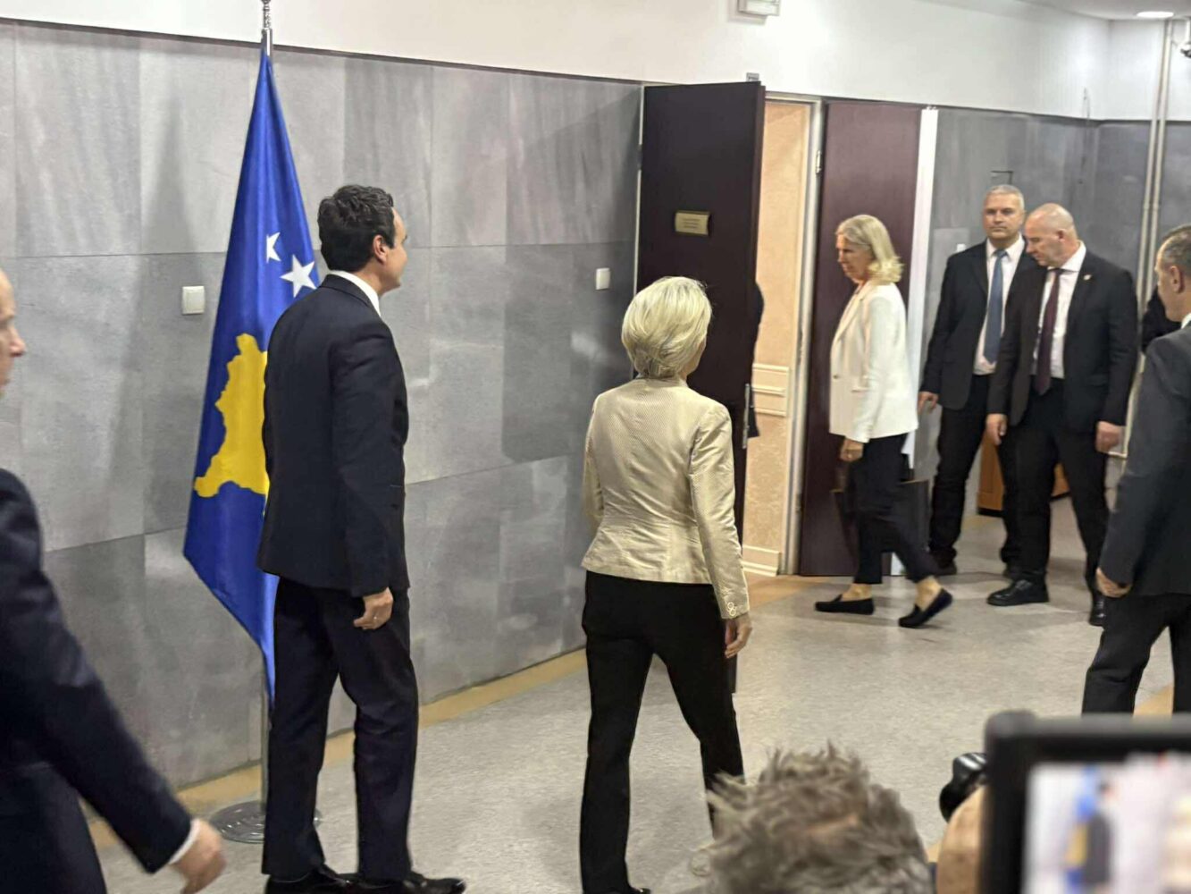 Ka filluar takimi i presidentes së Komisionit Evropian, Ursula von der Leyen, me kryeministrin në detyrë të Kosovës, Albin Kurti, raporton Ekonomia Online.