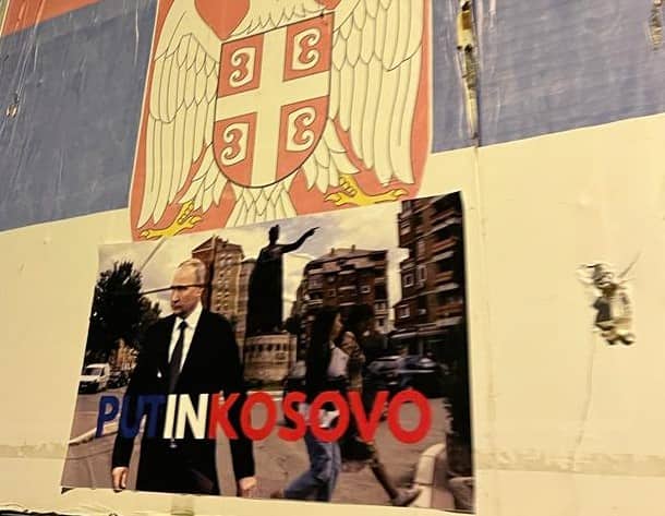 Po ashtu, në Mitrovicë të Veriut janë shfaqur posterët me mbishkrimin “Putini në Kosovë” së bashku me flamurët rusë, krah atyre serb.