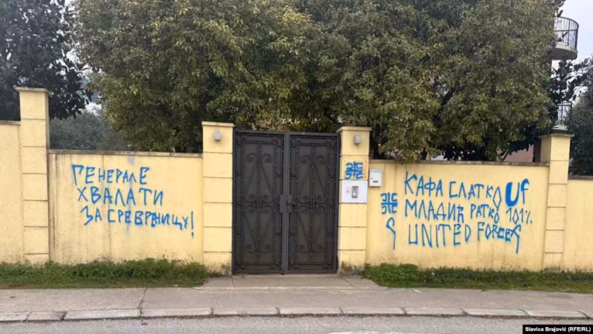 Në murin e ambasadës së Bosnjë dhe Hercegovinës (BiH) në Podgoricë gjatë natës është shkruar një grafit me të cilin lavdërohet gjenocidi ndaj popullsisë boshnjake në Srebrenicë në vitin 1995 dhe i dënuari për krime lufte Ratko Mladić.