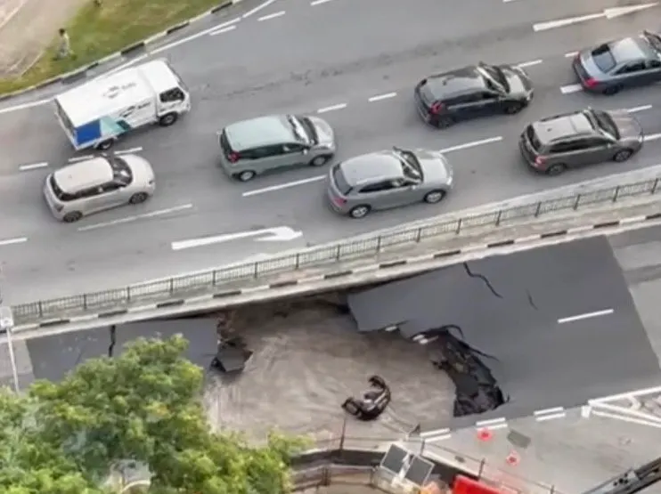 Një rrugë e sapo asfaltuar në Singapor, papritmas ka “përpirë” një makinë.