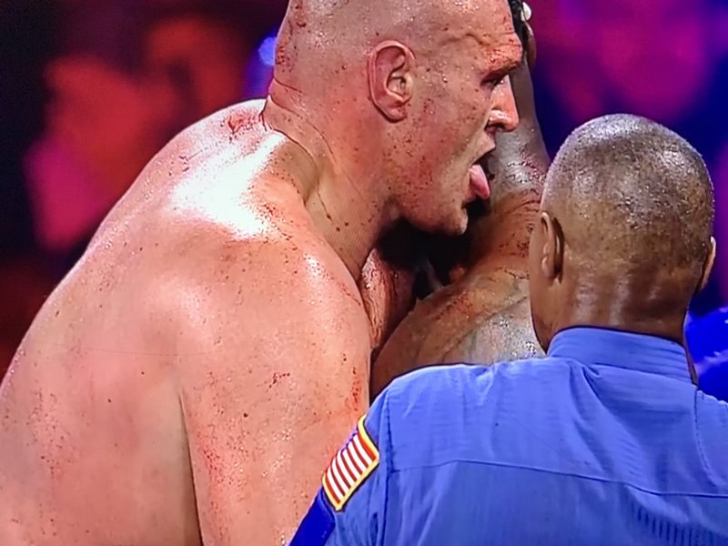 Tyson Fury i ka lënë gojëhapur teleshikuesit duke ia lëpirë gjakun Deontay Wilderit gjatë luftës së tyre brutale në Las Vegas.