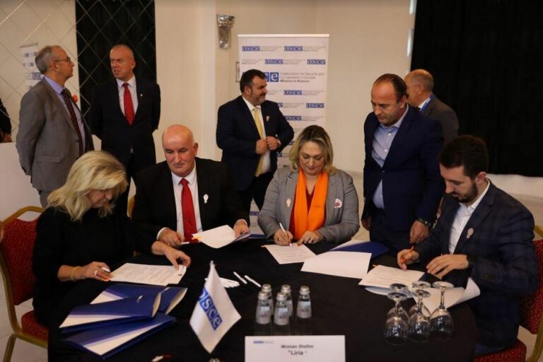 Nën lehtësimin e OSBE-së, në Gjilan është mbajtur sot ceremonia e nënshkrimit të memorandumeve të mirëkuptimit 2024-2026, ndërmjet komunave dhe strehimoreve për mbrojtjen e viktimave të dhunës në familje në Gjilan dhe Ferizaj, me qëllim për të ofruar mbështetje financiare për strehimoret dhe për të mbështetur punën e tyre.