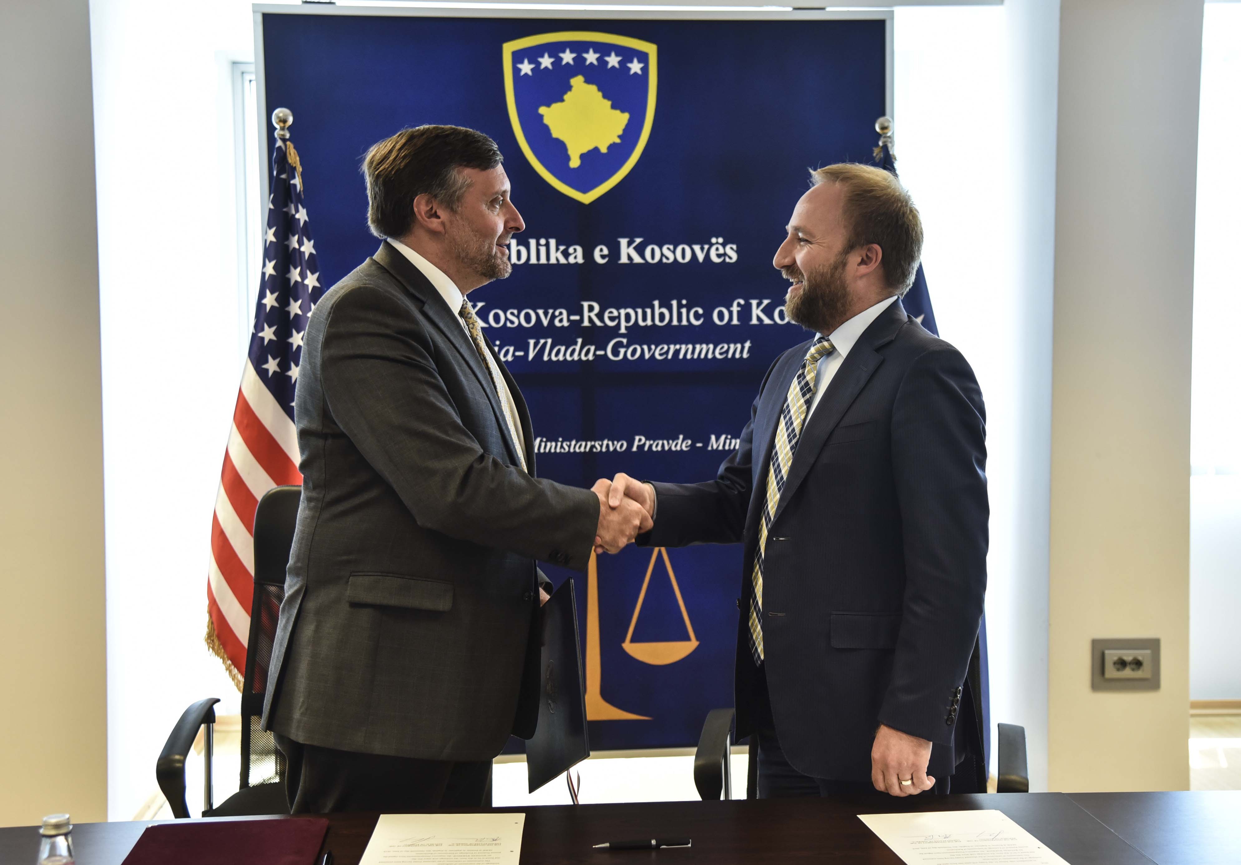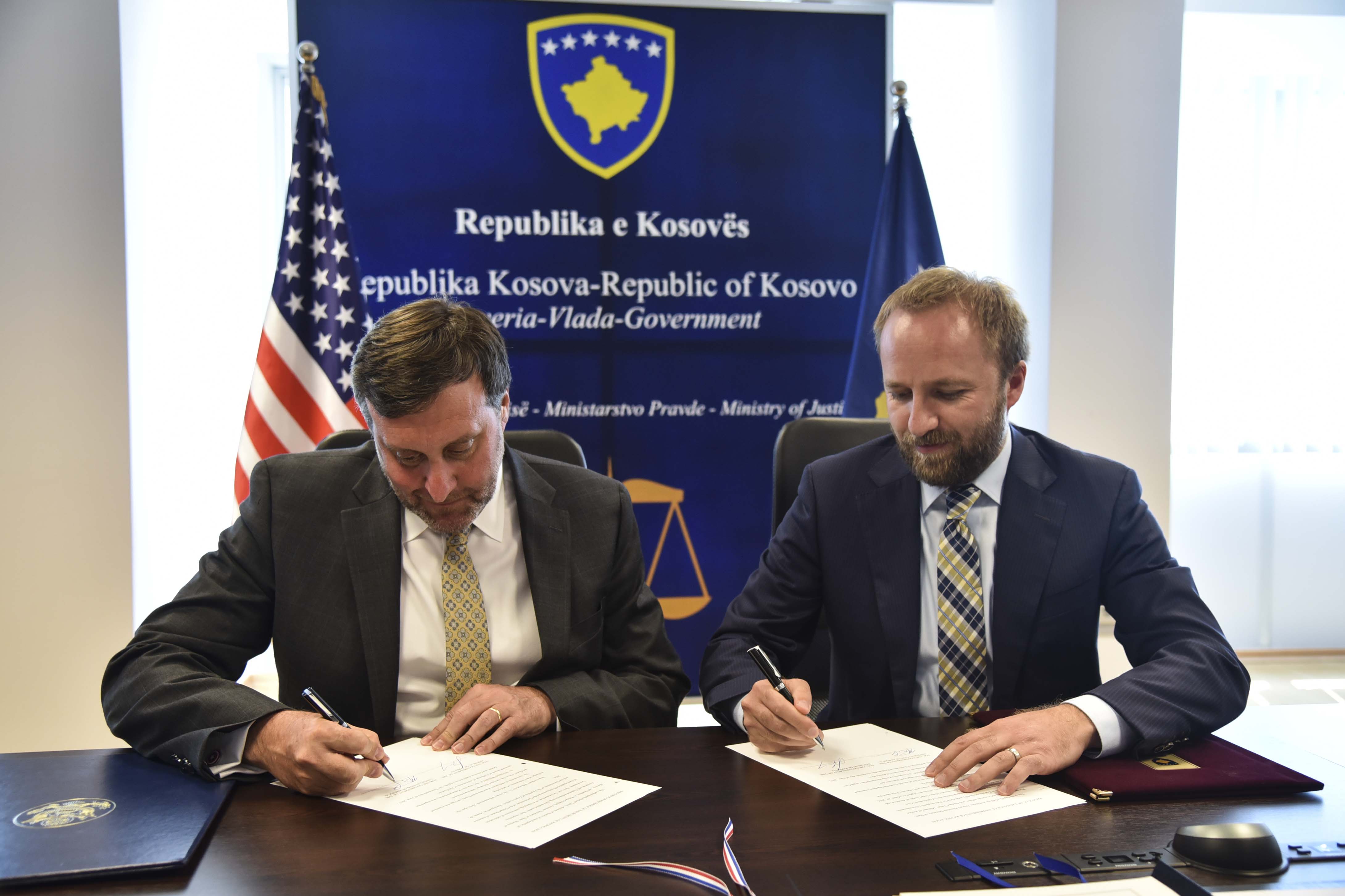 Ministri i Drejtësisë, Abelard Tahiri dhe Zëvendës Ndihmësi i Sekretarit Amerikan të Shtetit, Matthew Palmer, kanë nënshkruar sot protokollin e instrumenteve të Ratifikimit të Marrëveshjes së Ekstradimit në mes Republikës së Kosovës dhe Shteteve të Bashkuara të Amerikës.