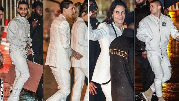 Por kjo ndjesi e tij nuk u nda edhe nga bashkëlojtarët dhe miqtë e yllit brazilian në këtë festë, me Edinson Cavani, Marco Verratti dhe Angel di Maria që e mbërthyen kodin e veshjes dhe u paraqiten në aheng në rroba të bardha, bashkë me anësorin e Lyonit, Memphis Depay.