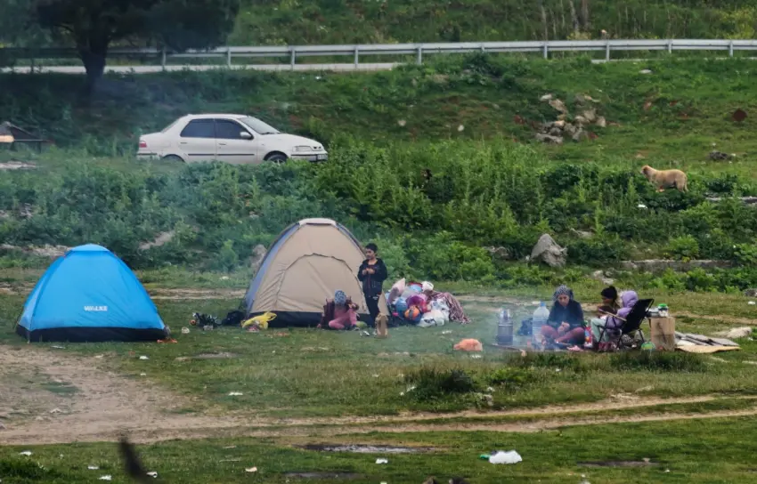 Emriye Toklu dhe familja e saj kanë fjetur në një tendë në një park pranë shtëpisë së tyre.