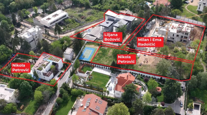 Në një zonë të kufizuar mes bulevardit ‘Knez Aleksandar Karadjorgjeviq’ dhe rrugëve Uzicka dhe Cakorska në Beograd, janë duke u ndërtuar hapësira të mëdha nëntokësore, në vilat që u përkasin bashkëshortes së Zvonko Veselinoviqit, kumbarit të presidentit serb Aleksandar Vuçiq – Nikola Petroviq, si dhe ish-bashkëshortes së vetë Milan Radoiçiqit.