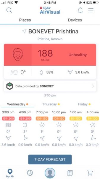 E ndërkohë sipas matësve të tjerë të ajrit, Kosova për momentin renditet e para në botë për ndotje.