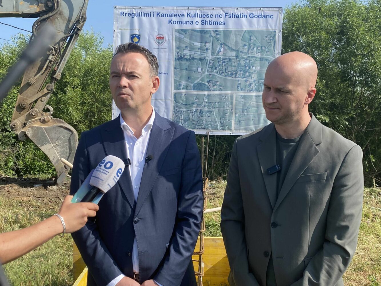 “Sot bashkë me ministrin Faton Peci jemi këtu në një ditë të veçantë në gurthemelin e një projekti që është shumë i rëndësishëm për komunën e Shtimes. Flasim për kanalet kulluese. Është faza e dytë, sepse fazën e parë bashkërisht me ministrin e kemi përfunduar vitin e kaluar. Janë rreth dy kilometra kanale kulluese që janë bërë. Tash po vazhdojmë me projektin që është faza e dytë, që do të ndërtohen rreth 3 kilometra kanal kullues, me një kosto prej mbi 450 mijë euro, me shpresën që të dy këto kanale do të bashkohen në fazën e tretë dhe do të shkojë ky kanal deri aty ku është i planifikuar përtej rrugës që ndan fshatrat. Këto toka kanë qenë zakonisht të përmbytura nga ujërat atmosferike, sidomos gjatë reshjeve të pranverës dhe vjeshtës”, tha ai.