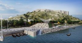 Kjo tryezë gëlqerore ngrihet nga uji bruz në një mjedis të ngjashëm mesdhetar që kombinon historinë me bukurinë natyrore.