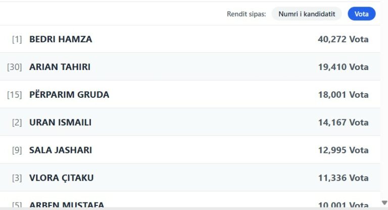 Pesë kandidatët më të votuar të kësaj partie janë: