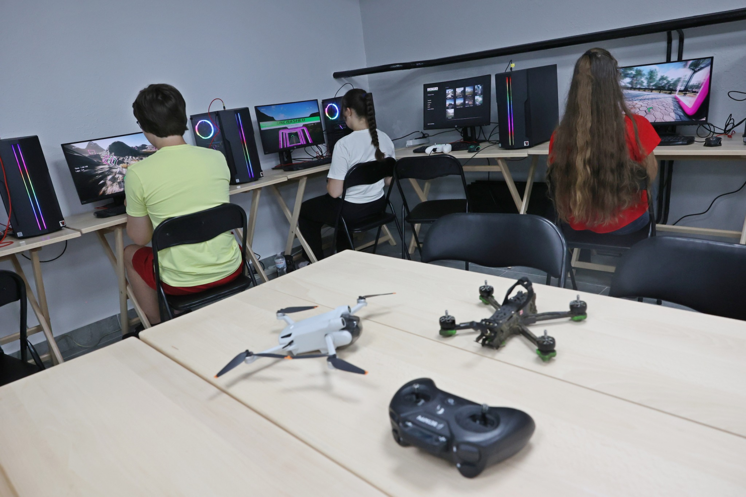 Në një postim në Facebook, kryetari i bashkisë së Lvivit, Andriy Sadovyi ndau foto të të rinjve të ulur para kompjuterëve dhe duke mësuar, siç tha ainaftësitë e fluturimit.