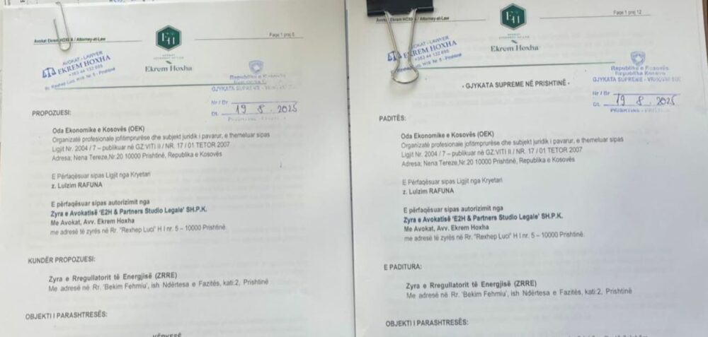 Oda Ekonomike e Kosovës ka bërë të ditur se ka dorëzuar padi në Gjykatën Supreme kundër Zyrës së Rregullatorit për Energji, lidhur me vendimin që detyron bizneset të kalojnë menjëherë në tregun e lirë të energjisë.