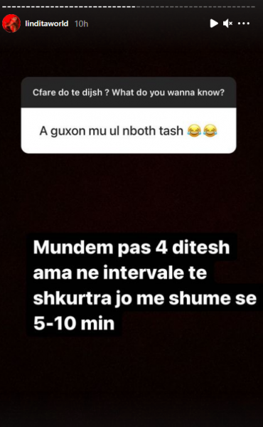 Në përgjigjet që i ka dhënë fansave të saj, ajo ka treguar se nuk mund të ulet deri në 5 javë.