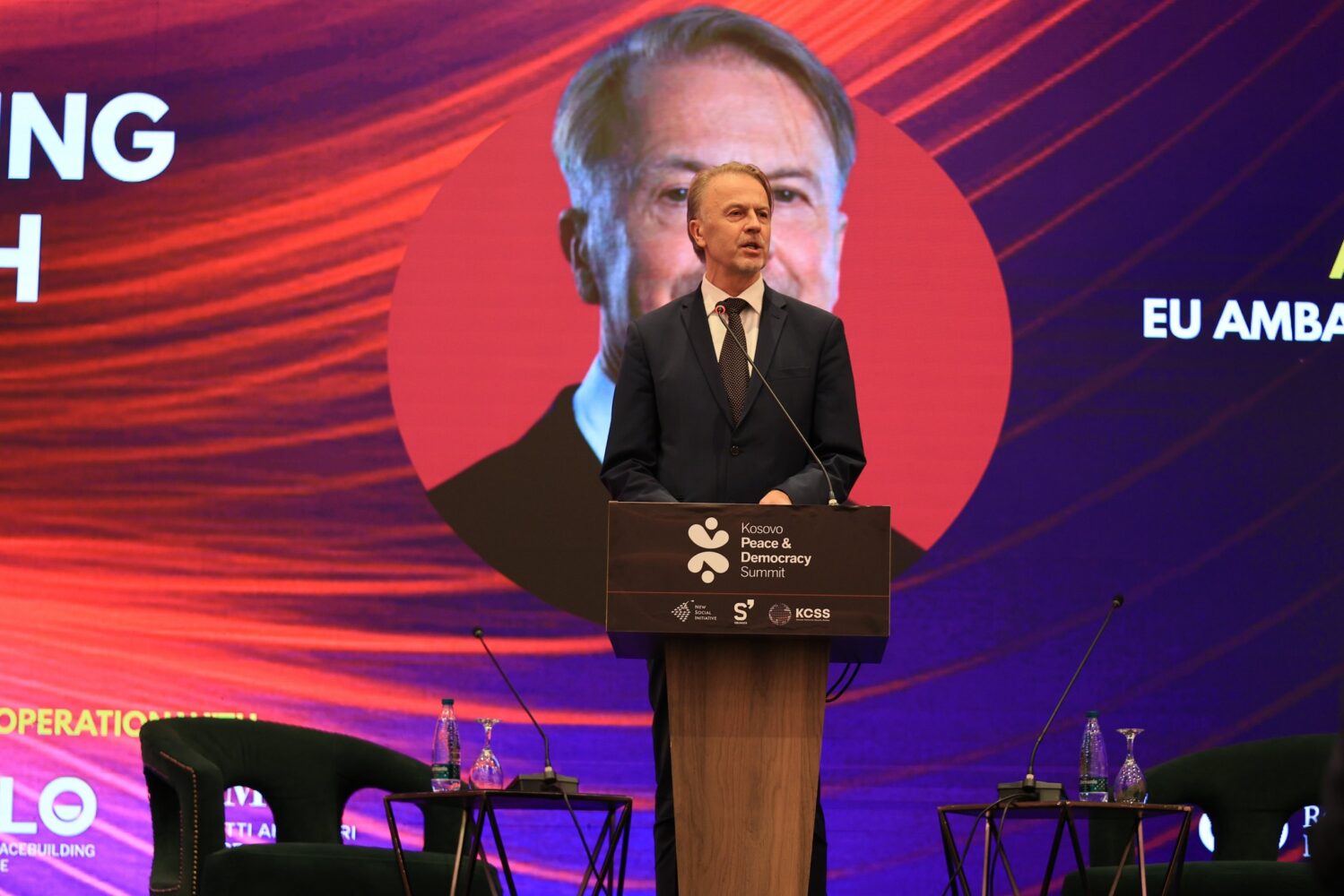“Në të gjithë Kosovën dhe rajonin më të gjerë, shoqëritë po lundrojnë përmes sfidave të paprecedentë. Dezinformimi, polarizimi dhe sulmet ndaj normave demokratike po kërcënojnë themelet e besimit dhe angazhimit qytetar. Kjo është arsyeja pse jemi mbledhur sot në Samitin për Paqe dhe Demokraci në Kosovë, një mundësi për të vepruar së bashku. Në gjithë Evropën dhe më gjerë, dezinformimi synon të dobësojë besimin në institucione, të polarizojë shoqëritë dhe të shfrytëzojë ndarjet. Këto sfida tejkalojnë kufijtë, dhe Kosova nuk bën përjashtim. Sipas gjetjeve të partnerit tonë, Hybrid.info, dezinformimi dhe ndjenjat nxitëse të tij janë shumë të theksuara, veçanërisht rreth zgjedhjeve dhe çështjeve të sigurisë” tha ai.