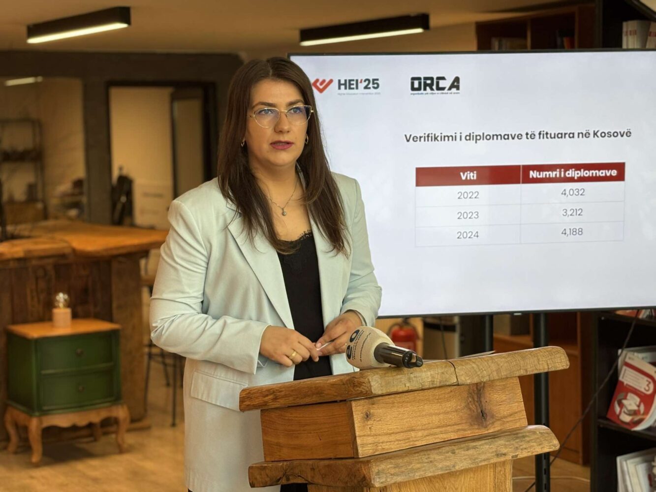 “Kur jemi te verifikimi, rezulton që 4,188 diploma të fituara në institucionet arsimore brenda Kosovës janë verifikuar nga qendra NARIC në vitin 2024. Për krahasim, në vitin 2023 NARIC kishte verifikuar 3,212 diploma dhe në vitin 2022 kishte verifikuar 4,032.