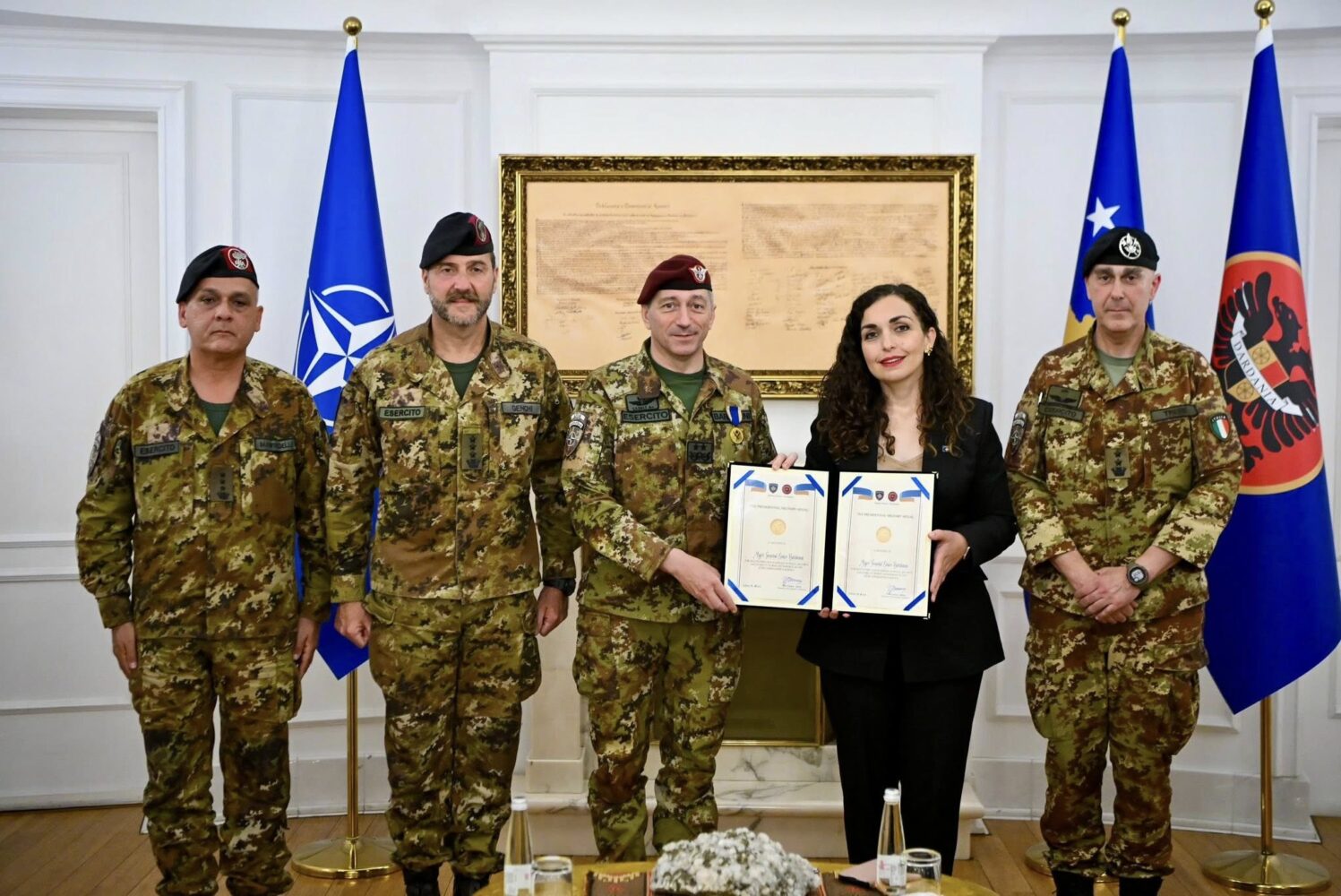 “Gjatë mandatit të tij në krye të KFOR-it, gjeneralmajor Enrico Barduani ka dhënë kontribut të çmuar për paqen dhe sigurinë në Kosovë dhe në rajon. Në shenjë falënderimi për këtë shërbim të vyer, gjatë javës që shkoi, i ndava atij Medaljen Presidenciale Ushtarake, një simbol i mirënjohjes së popullit tonë për përkushtimin e pandërprerë të NATO-s për paqe dhe siguri afatgjate”, ka shkruar Osmani.