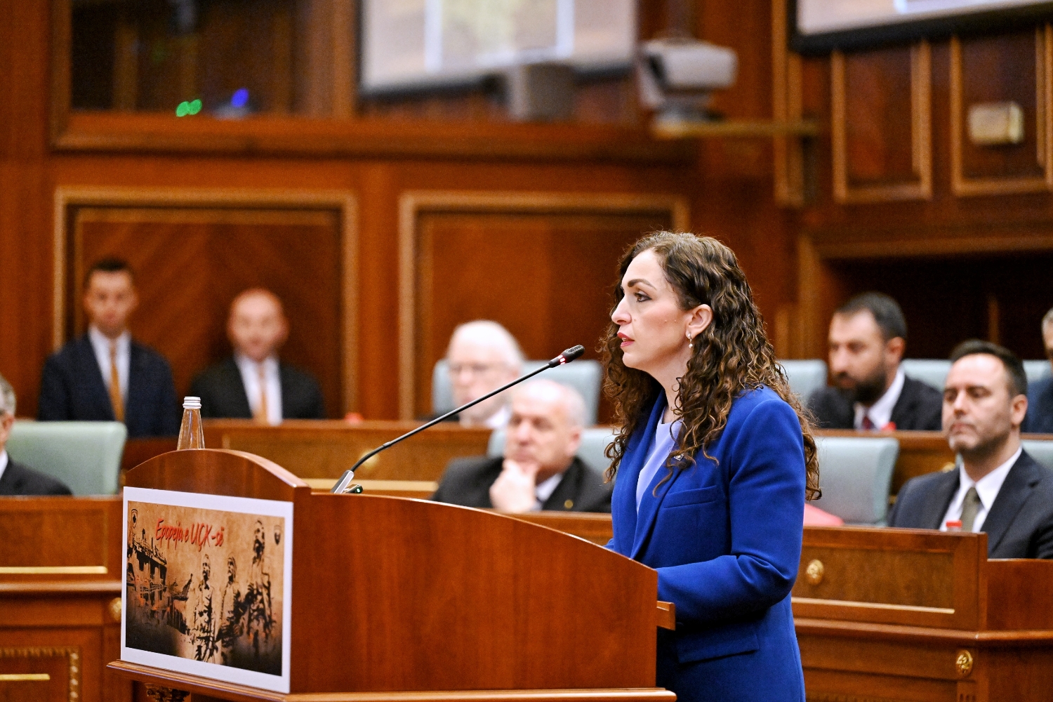 “Epopeja e marsit nuk është vetëm kujtesë emocionale. Është akt themelues i Republikës sonë dhe moment kur pushka e qëndresës u bë zë politik i një kombi që kërkonte vendin e vet në botë si komb i lirë. Nga Prekazi nisi orteku i lirisë që nuk u ndal më. Nisi një frymë që u përhap në çdo fshat e në çdo qytet. Nisi një betim se kjo tokë nuk do të nëpërkëmbet. Epopeja është epike sepse buroi nga populli”, theksoi ajo.