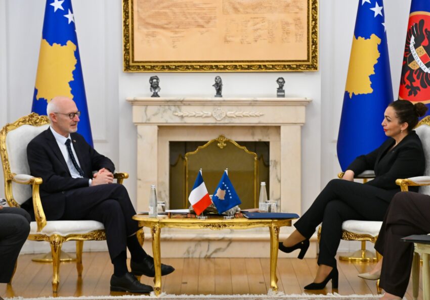 Presidentja e Kosovës, Vjosa Osmani ka pritur në takim ambasadorin e Francës në Kosovë, Oliver Guerot. Në takim potencohet të jetë diskutuar për zhvillimet e fundit politike në vend, me theks rëndësinë e funksionalizimit të të gjitha institucioneve të Kosovës. ”Gjatë takimit u diskutuan zhvillimet e fundit politike në vend, rëndësia e funksionalizimit të plotë të të gjitha institucioneve të Republikës së Kosovës në pajtim me Kushtetutën, si dhe marrëdhëniet bilaterale ndërmjet Kosovës dhe Francës”, thuhet në njoftimin e presidencës.
