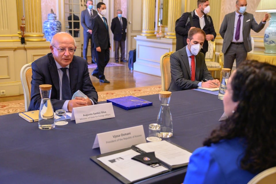 Në takim me ministrin Santos Silva, Presidentja Osmani ka folur edhe për të arriturat e deritashme të Kosovës, duke potencuar synimin për forcimin e sundimit të ligjit. Gjithashtu, Presidentja ka përmendur edhe reformat gjithëpërfshirëse në ekonomi. Ndërkaq sa i përket sfidave, Presidentja Osmani ka theksuar se Kosova përballet me izolim, shkaku i mosliberalizimit të vizave, duke potencuar faktin se tashmë janë plotësuar të gjitha kriteret. Ndërkaq sa i përket dialogut me Serbinë, Presidentja Osmani ka theksuar se ai domosdoshmërisht duhet të finalizohet me marrëveshje për njohje reciproke. Presidentja Osmani ka kërkuar mbështetjen e Portugalisë në rrugën evropiane të Kosovës, si dhe anëtarësimit në organizata ndërkombëtare.
