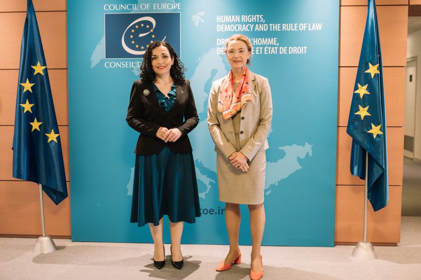 Presidentja e Kosovës, Vjosa Osmani, njoftoi se gjatë takimit të sotëm me Sekretaren e Përgjithshme të Këshillit të Evropës, Marija Pejçinoviq Buriq ka theksuar përkushtimin e Kosovës ndaj demokracisë, sundimit të ligjit dhe të drejtave të njeriut, si tre shtyllat thelbësore të Këshillit të Evropës.
