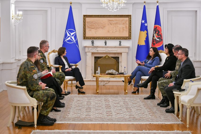 Presidentja e Kosovës, Vjosa Osmani, ka pritur sot në takim Shefen e Operacioneve Aktuale në Selinë e NATO-s, Ariella Viehe, drejtorin në largim të NALT-it, Gjeneral Brigade Christian Nawrat dhe Drejtorin e ri, Gjeneral Brigade Dr. Sven Lange.