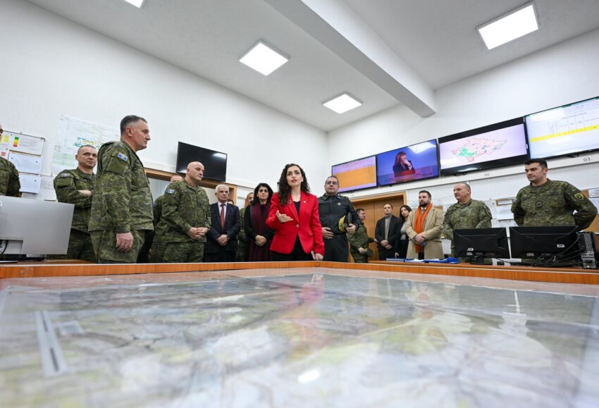 Presidentja e Kosovës, Vjosa Osmani, ka vizituar në fundvit institucionet e sigurisë, duke falënderuar pjesëtarët e Forcës së Sigurisë së Kosovës dhe Policinë e Kosovës për angazhimin e tyre të pandërprerë në garantimin e rendit, sigurisë dhe mbrojtjes së Republikës.