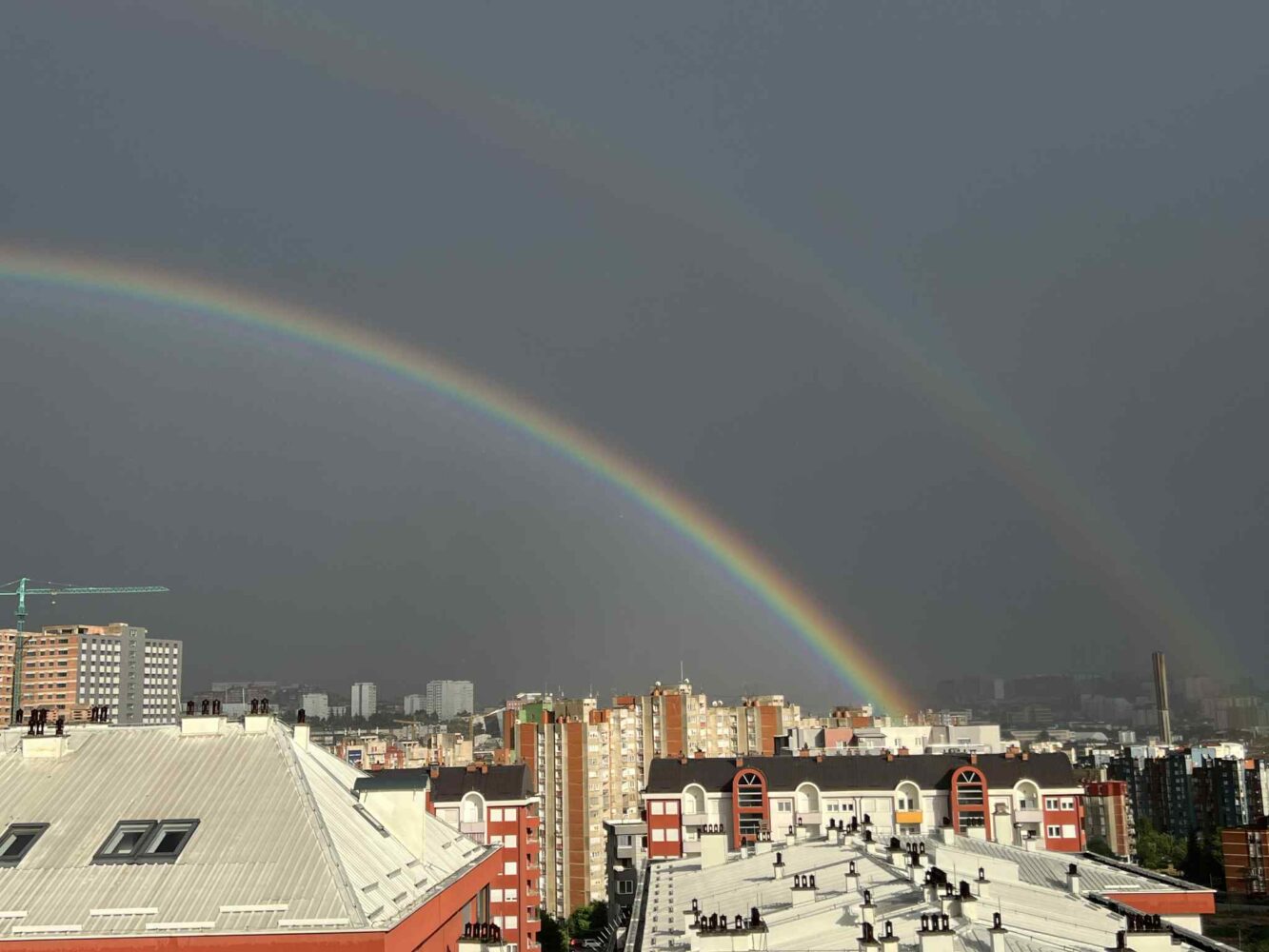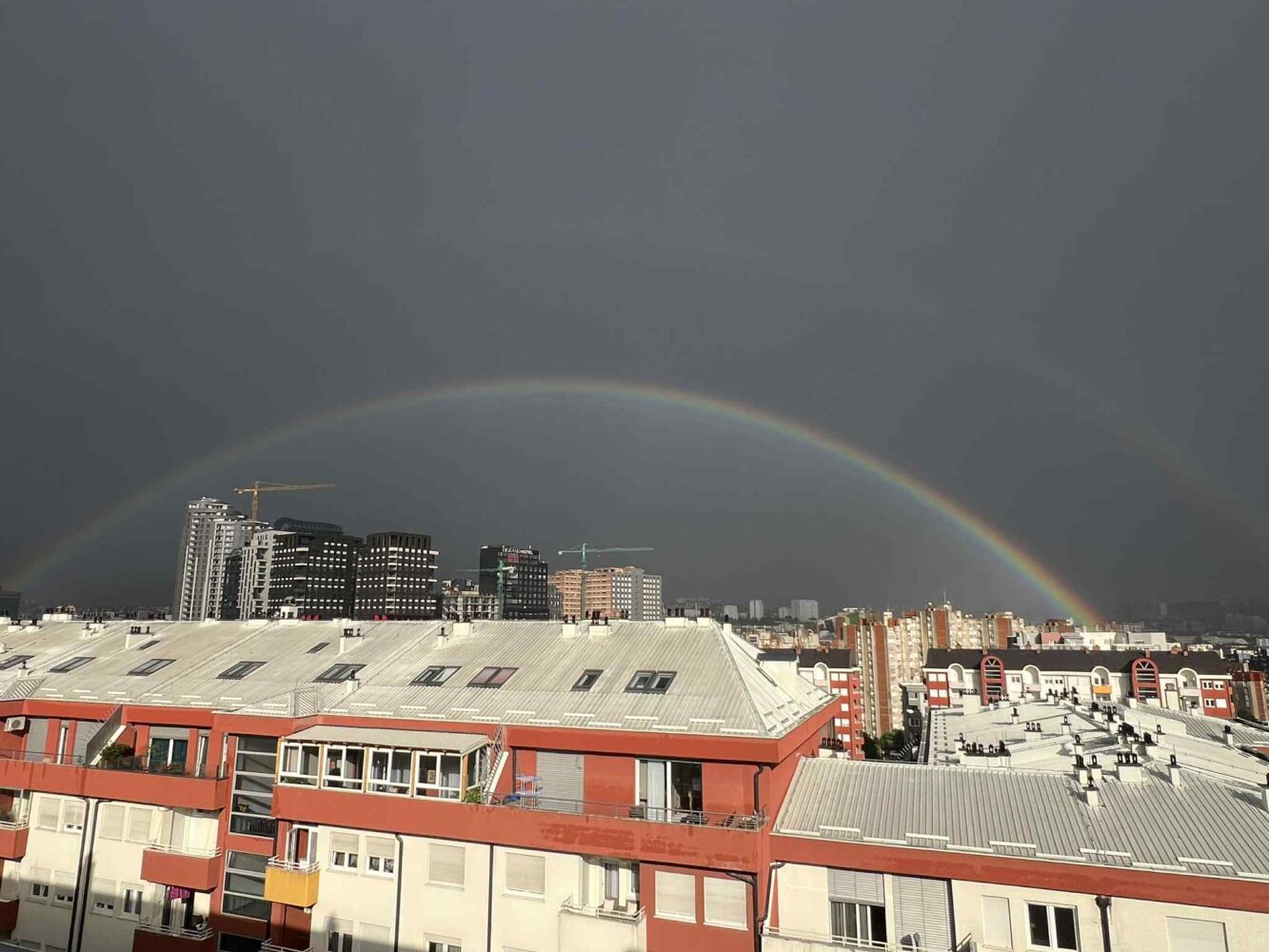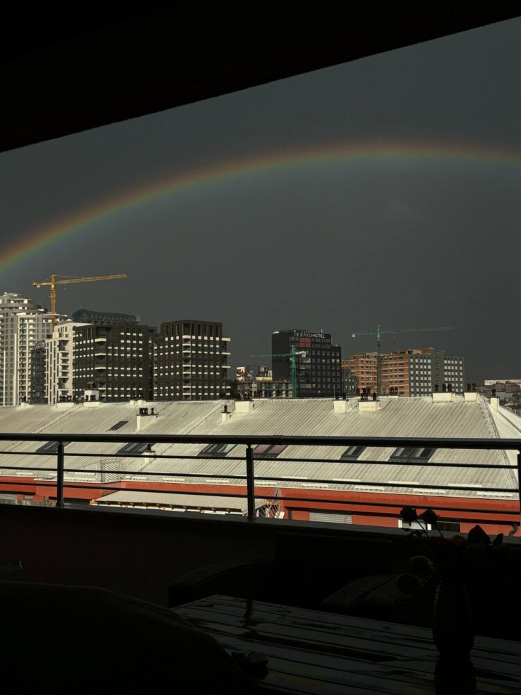Megjithatë, pas reshjeve të dendura, banorët e Prishtinës u befasuan nga një pamje mbresëlënëse: një ylber i gjallë dhe shumëngjyrësh u shfaq mbi qytet, duke krijuar një moment të bukur qetësie dhe reflektimi pas motit të trazuar.