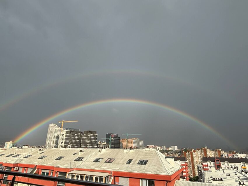 Megjithatë, pas reshjeve të dendura, banorët e Prishtinës u befasuan nga një pamje mbresëlënëse: një ylber i gjallë dhe shumëngjyrësh u shfaq mbi qytet, duke krijuar një moment të bukur qetësie dhe reflektimi pas motit të trazuar.