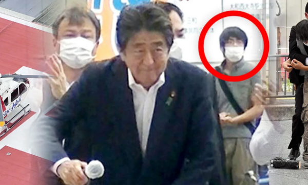 Në pamjet televizive Abe shihet të bjerë në asfalt me gjoksin e përgjakur, teksa rojet e sigurisë vrapojnë drejt tij.